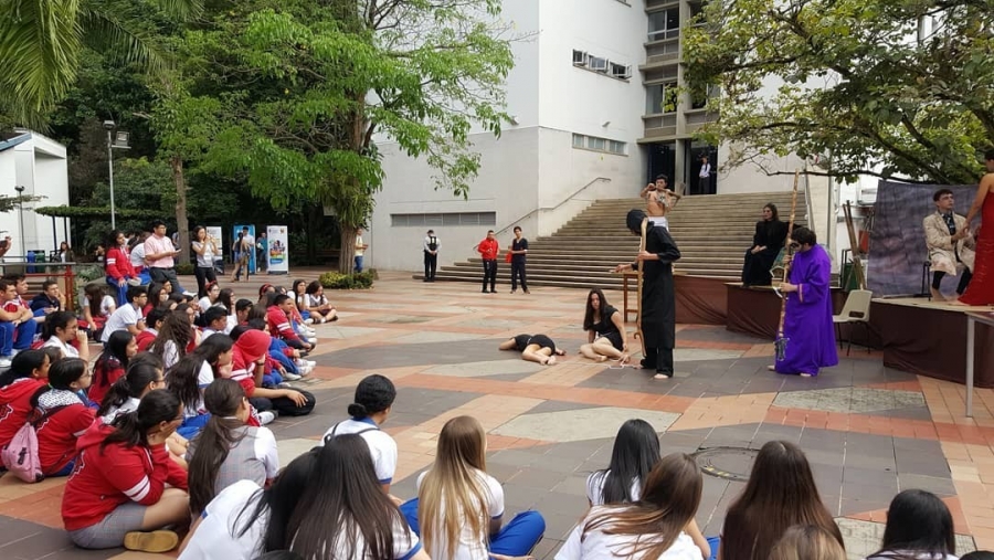 2.000 Estudiantes de undécimo grado de distintos colegios públicos y privados de Bucaramanga y su área metropolitana visitaron este jueves y viernes 25, 26 de octubre la Universidad Pontificia Bolivariana Seccional Bucaramanga, e hicieron parte de diferentes actividades que se desarrollaron dentro del campus a lo largo de su recorrido por las instalaciones de la universidad, una de estas estuvo a cargo del grupo de teatro ‘Mangle Rojo’ de la UPB quienes presentaron una obra de teatro al colegio La Presentación y el Gimnasio Cantillana en horas de la mañana, además de diferentes muestras culturales también contaron con presentaciones deportivas de los diferentes equipos de la UPB.