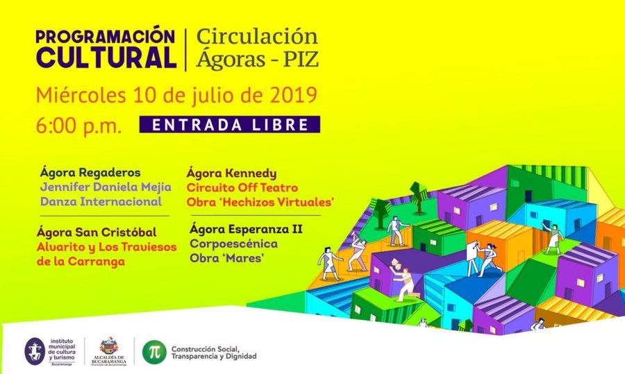 El pasado 10 de julio se dio la apertura de Circulación Ágoras – PIZ (Plan Integral Zonal) a cargo del Instituto Municipal de Cultura y Turismo de Bucaramanga (IMCT), cuyo propósito es “lograr la igualdad social llevando cultura a escenarios del Norte de Bucaramanga que la Alcaldía ha transformado” dijo Laura Isabel Ocazionez, miembro del equipo de Comunicaciones del IMCT. Los eventos finalizan el 14 de noviembre del mismo año, y hasta entonces las comunas uno y dos en el Norte de Bucaramanga (las Ágoras del Barrio Kennedy, San Cristóbal, Esperanza II y Regaderos) son los escenarios para llevarlos a cabo cada miércoles a las 6 pm simultáneamente, aunque más adelante tendrán cabida en tres espacios más del Norte de la ciudad cada sábado (el Parque Colorados, Parque Lineal del Río de Oro y en el colegio público del barrio El Pablón). Las familias locales tienen la posibilidad de disfrutar gratuitamente espectáculos nunca antes vistos en esos sectores.