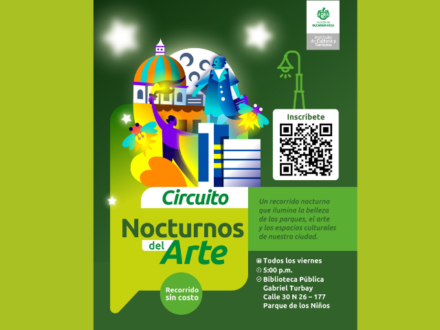 El Instituto Municipal de Cultura y Turismo (IMCT) impulsa cada viernes “Nocturnos del Arte”, un recorrido cultural gratuito que busca reactivar el centro histórico de Bucaramanga a través del arte y el patrimonio.