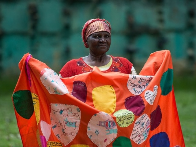 Uno de sus elementos más representativos de su labor fue el tejido, una práctica que resignificó como herramienta política, simbólica y comunitaria. Ella no solo lo adoptó como una actividad artesanal, sino que lo convirtió en un espacio de encuentro y sanación colectiva. A través de hilos, telas y puntadas, las mujeres con la que trabajó lograron narrar historias, elaborar duelos y mantener viva la memoria de lo ocurrido en sus territorios.